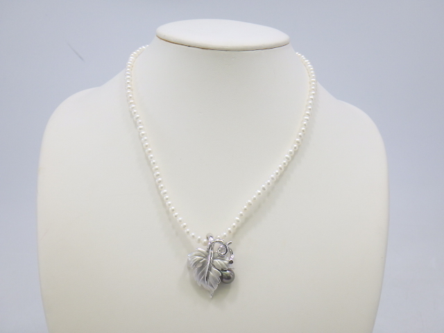 - h5F071Z3 真珠 淡水パール 黒真珠 ブローチ兼用 ペンダント ネックレス SILVER925 STERLING刻印有