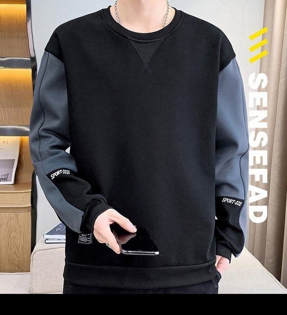 - LRM3548★長袖tシャツ トップス 切り替え カジュアル 春物 春秋 裏起毛選択可 大きいサイズあり 冬 黑