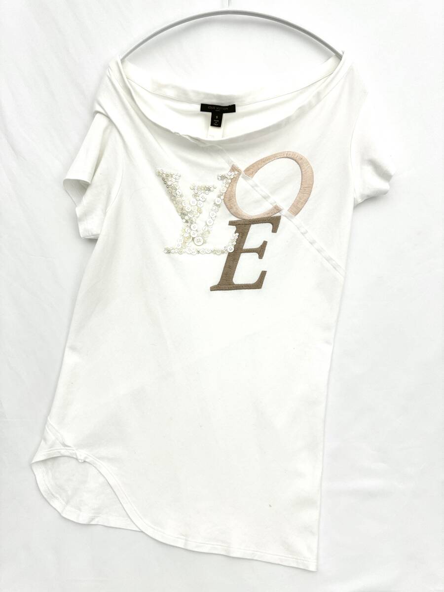 - 6I0816【本物保証】ルイヴィトン チュニック ワンピース Tシャツ ホワイト LV LOVE ザッツ ラブ ロゴ 刺繍 #S LOUIS VUITTON