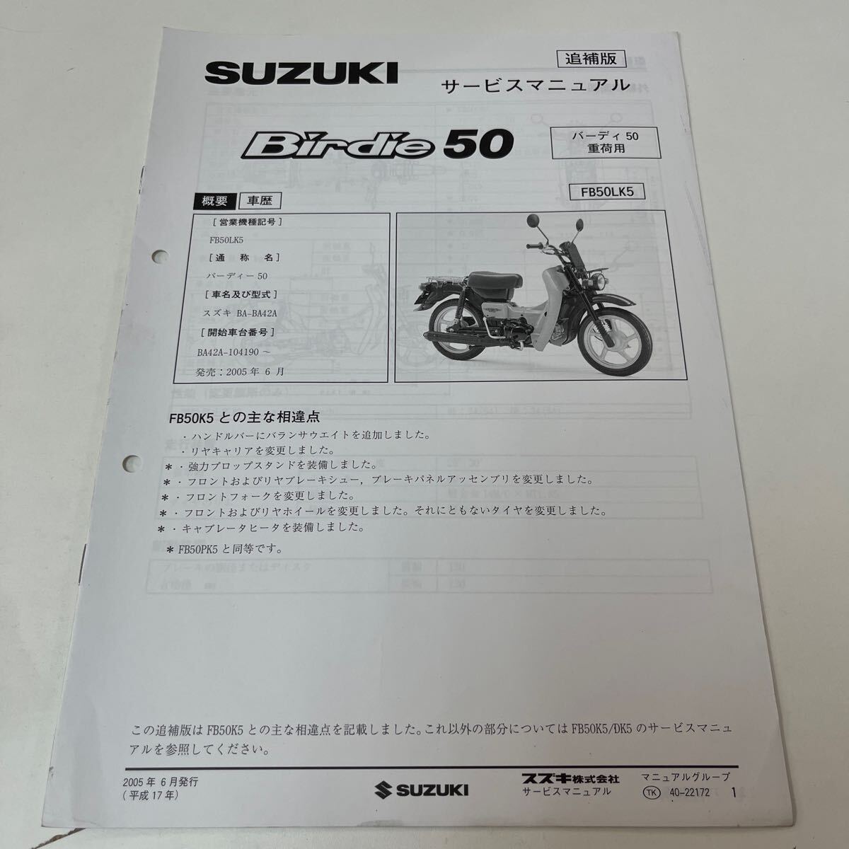 - AB-0042★クリックポスト(全国一律送料185円) SUZUKI スズキ サービスマニュアル 追補版 Birdie50 BA42A バーディ50 2005年6月発行 O-1/①