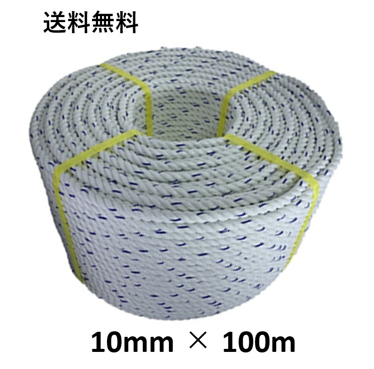 - 送料無料 スパンエステルロープ エステルスパンロープ 10mm×100m 綱引きロープ 三つ打ち ロープ 線入