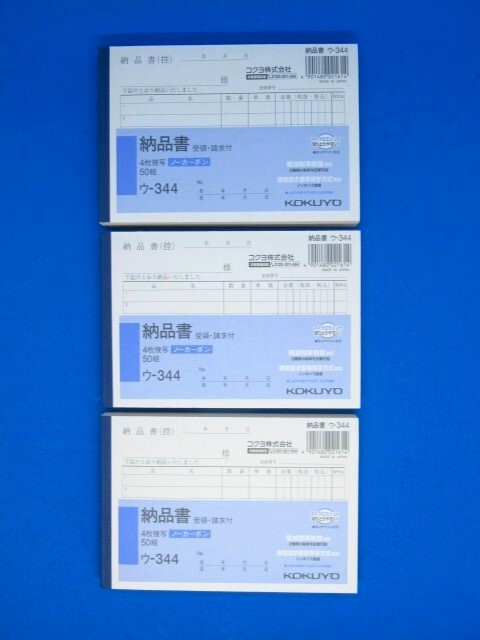 > コクヨ (KOKUYO) 複写簿 ウ-344 4枚 納品書 (請求・受領付き)A6ヨコ型 6行 50組 3冊★未使用・送料無料★