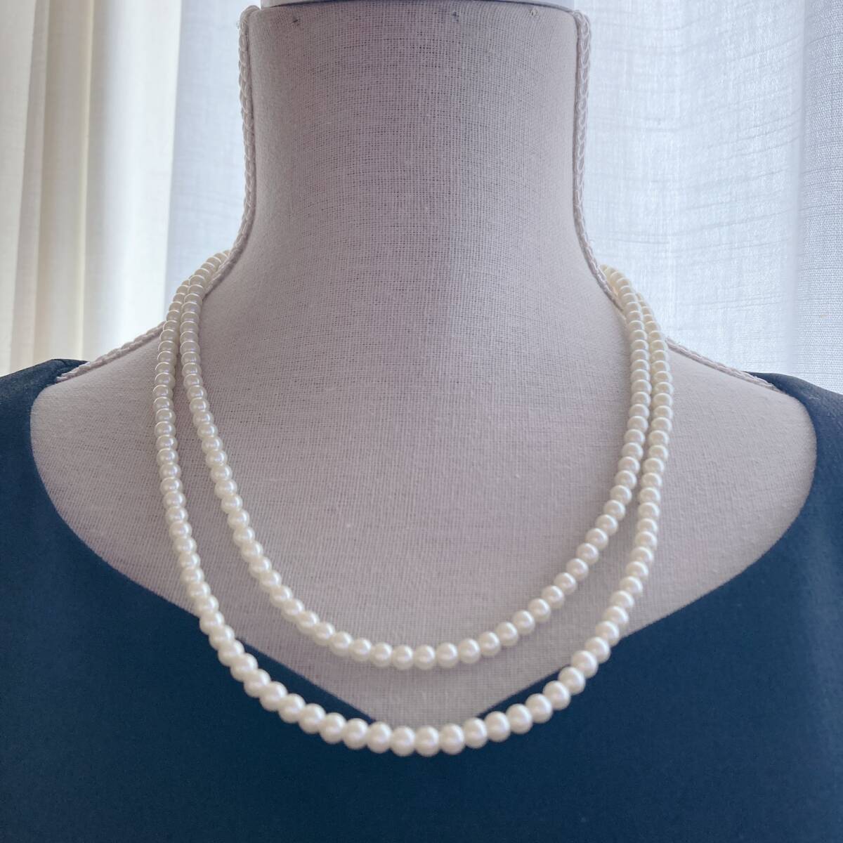 - パールネックレス 2連 ダブル ベビーパール 5mm 美品 パーティー フォーマル 左右カニカン☆Vintage jewelry accessoriesk0876