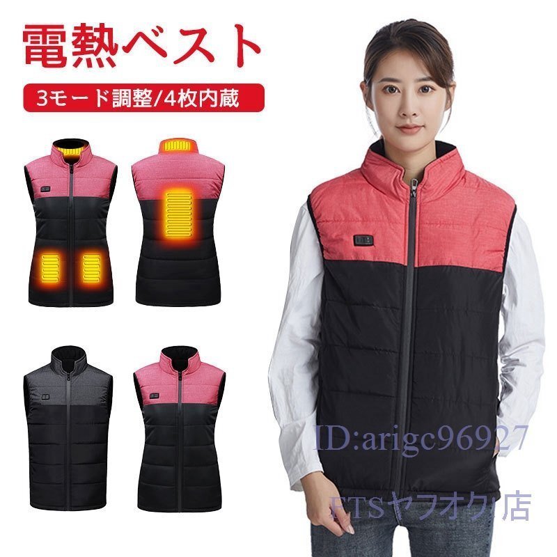 > X193☆防寒着 電熱ベスト 防寒保温ベストレディース バッテリー付きません ヒーター4つヒーターヒーター中綿 作業服 ヒーター内蔵 L