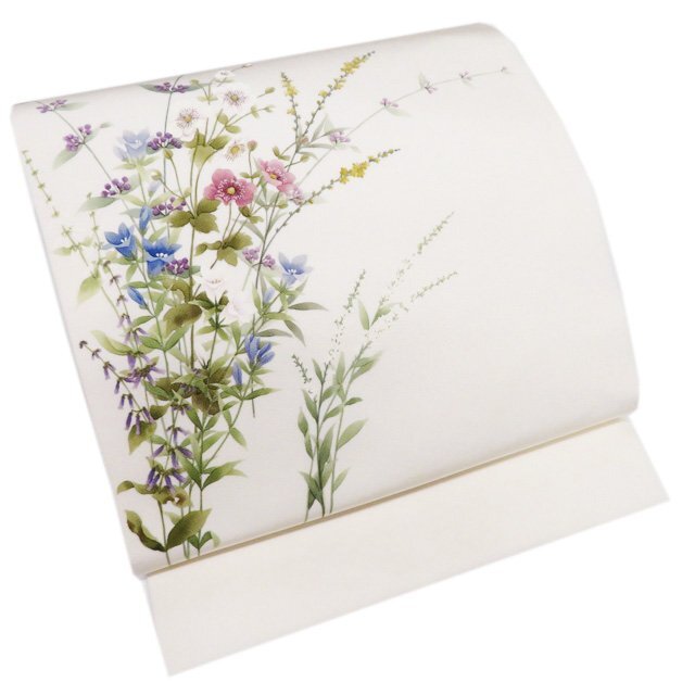 > 特選 名古屋帯 なごや帯 中古 リサイクル 正絹 仕立て上がり 作家物 中馬和子 塩瀬 花の図 乳白色 多色 きもの北條 A1088-11
