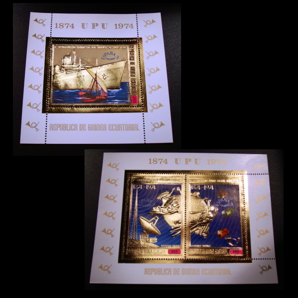 - ■赤道ギニア切手 1974年 万国郵便連合100周年 / UPU 金箔切手シート2枚