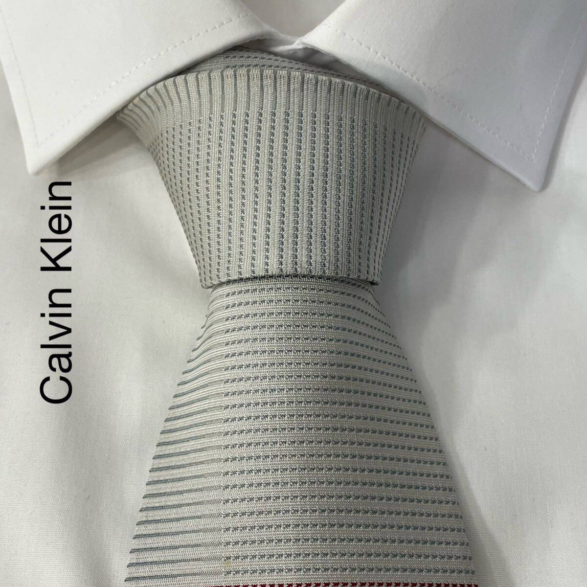 - Calvin Klein カルバンクライン ボーダー シルク ネクタイ 日本製 グレー TG221