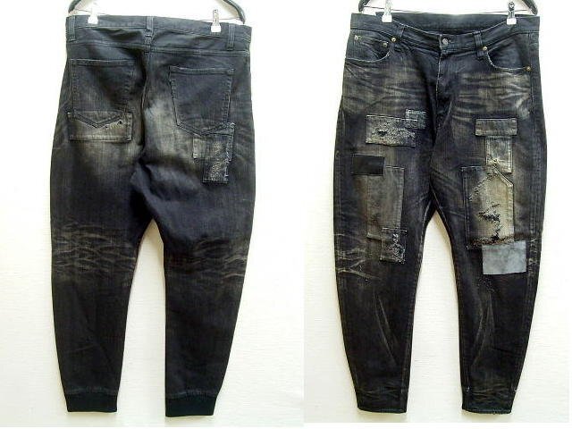 > ◇即決[4]glamb パッチワーク リペア ブラック ビンテージ加工 裾リブ 日本製 デニム パンツ■4240