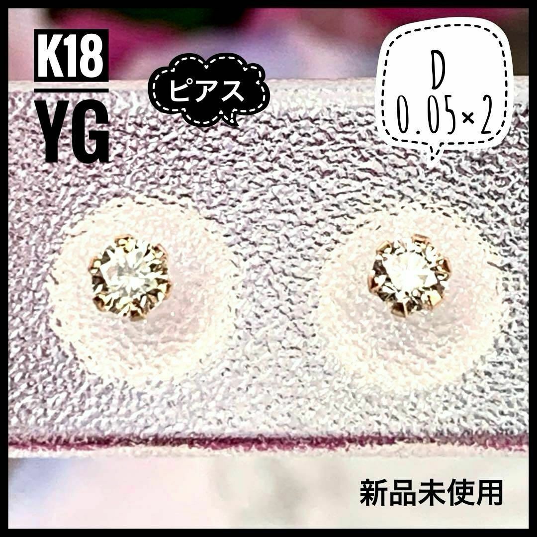 - 未使用品 K18 イエローゴールド ダイヤモンド 0.1ct 一粒ダイヤ ピアス