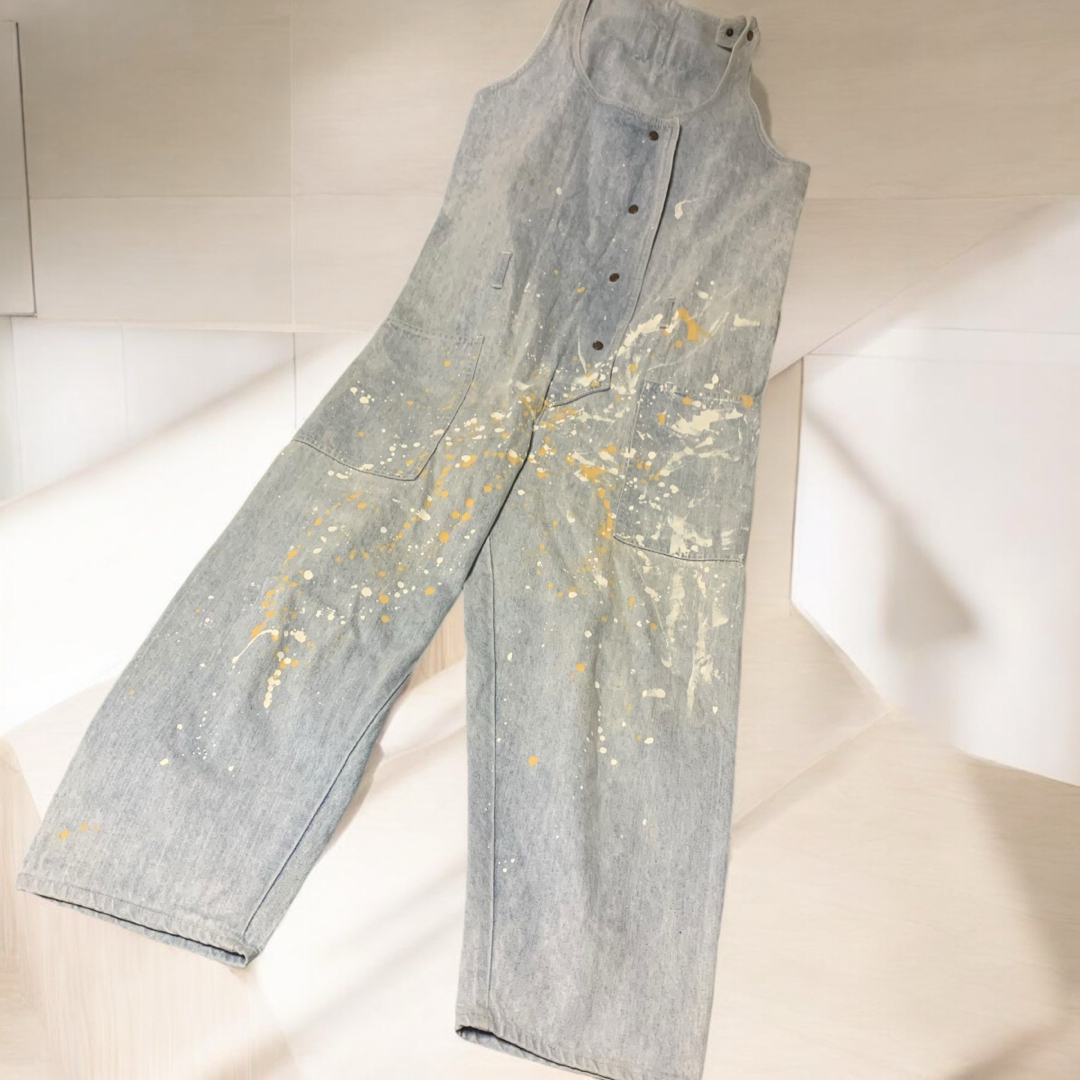 - Cracker leans オールインワン 1点物 ブルー オーバーオール サロペット デニム ペンキ ダメージ加工 ブルー 飛沫