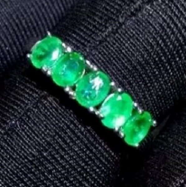 天然エメラルドのオープンリング、925シルバー、証明書