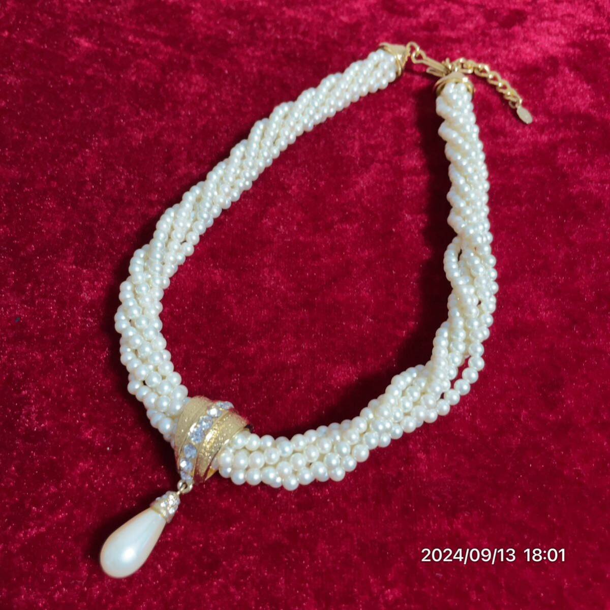 - HANAE MORI ハナエモリ パール調 ラインストーン ツイスト ネックレス チョーカー アクセサリー