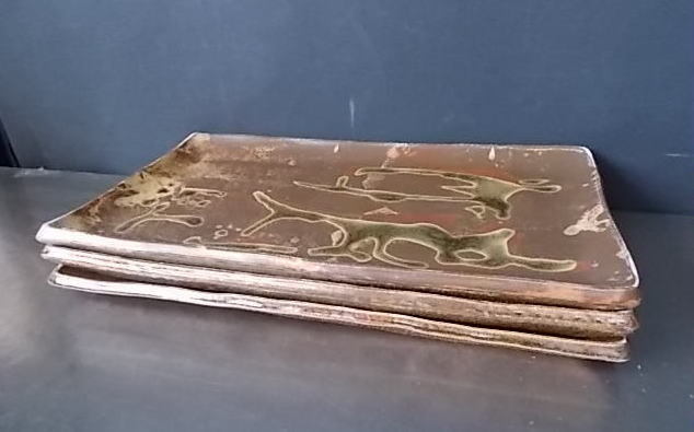 - K-520 店舗用 お皿3枚セット 455×265×30 角皿 業務用 大皿 和食器中古