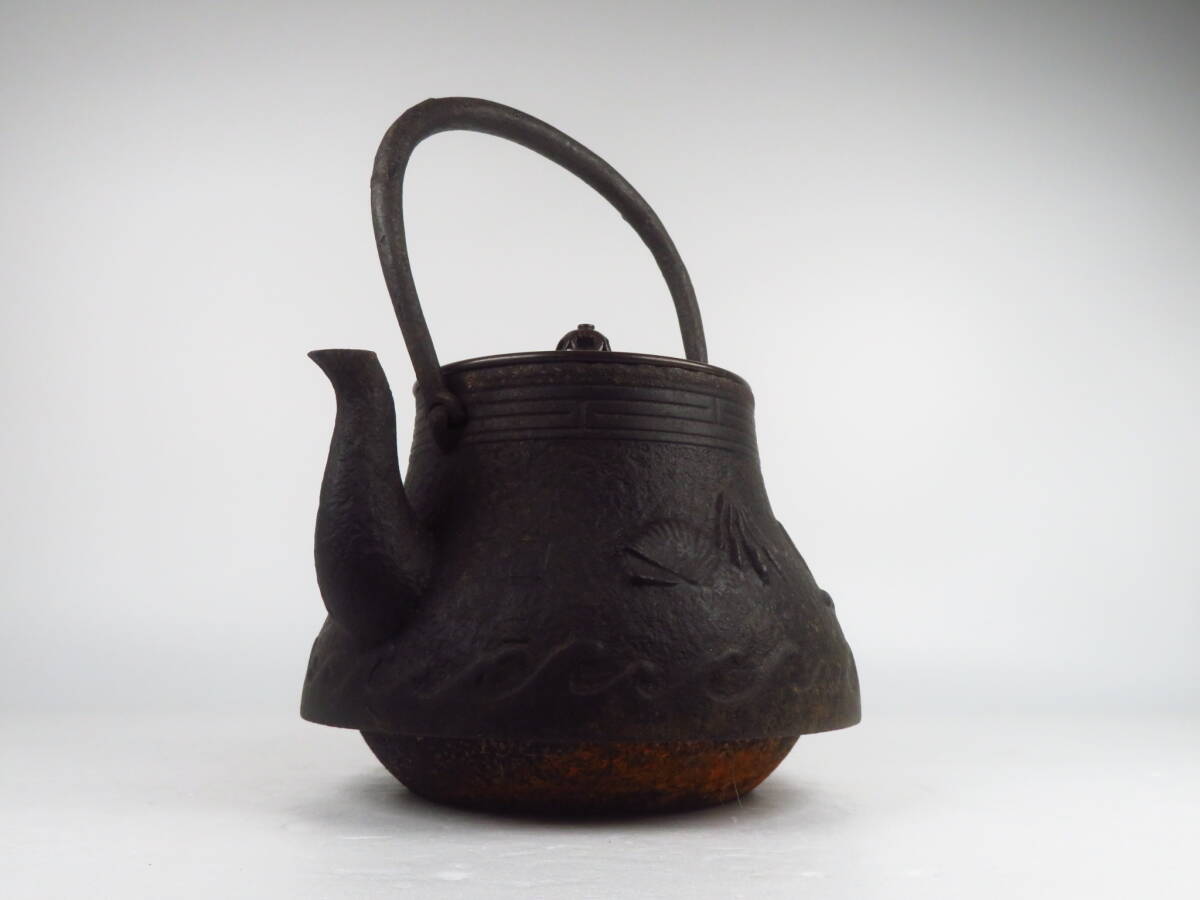 > 旧家整理品 南部鉄器 貝尽くし彫鉄瓶 急須 煎茶道具 湯沸 茶道具 骨董品 古美術品 時代物 当時物 高さ25.5cm 重量2190g【917】