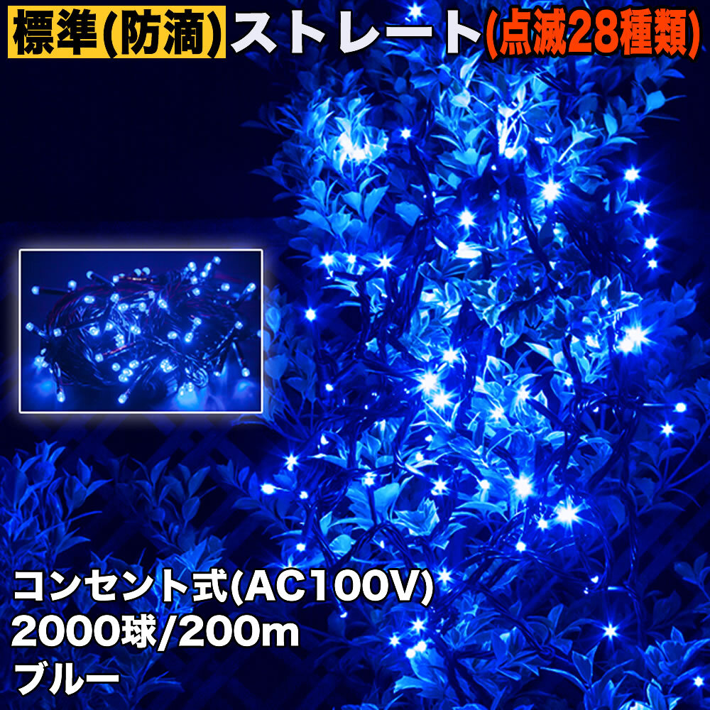 > クリスマス 防滴 イルミネーション ストレート ライト 電飾 LED 2000球 200m ブルー 青 28種点滅 Bコントローラセット