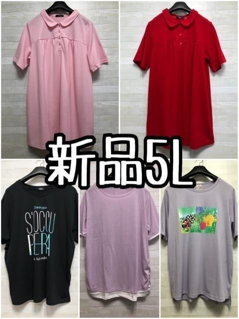 - 新品☆5L♪プリントTシャツなど♪トップス5枚セット♪☆f208