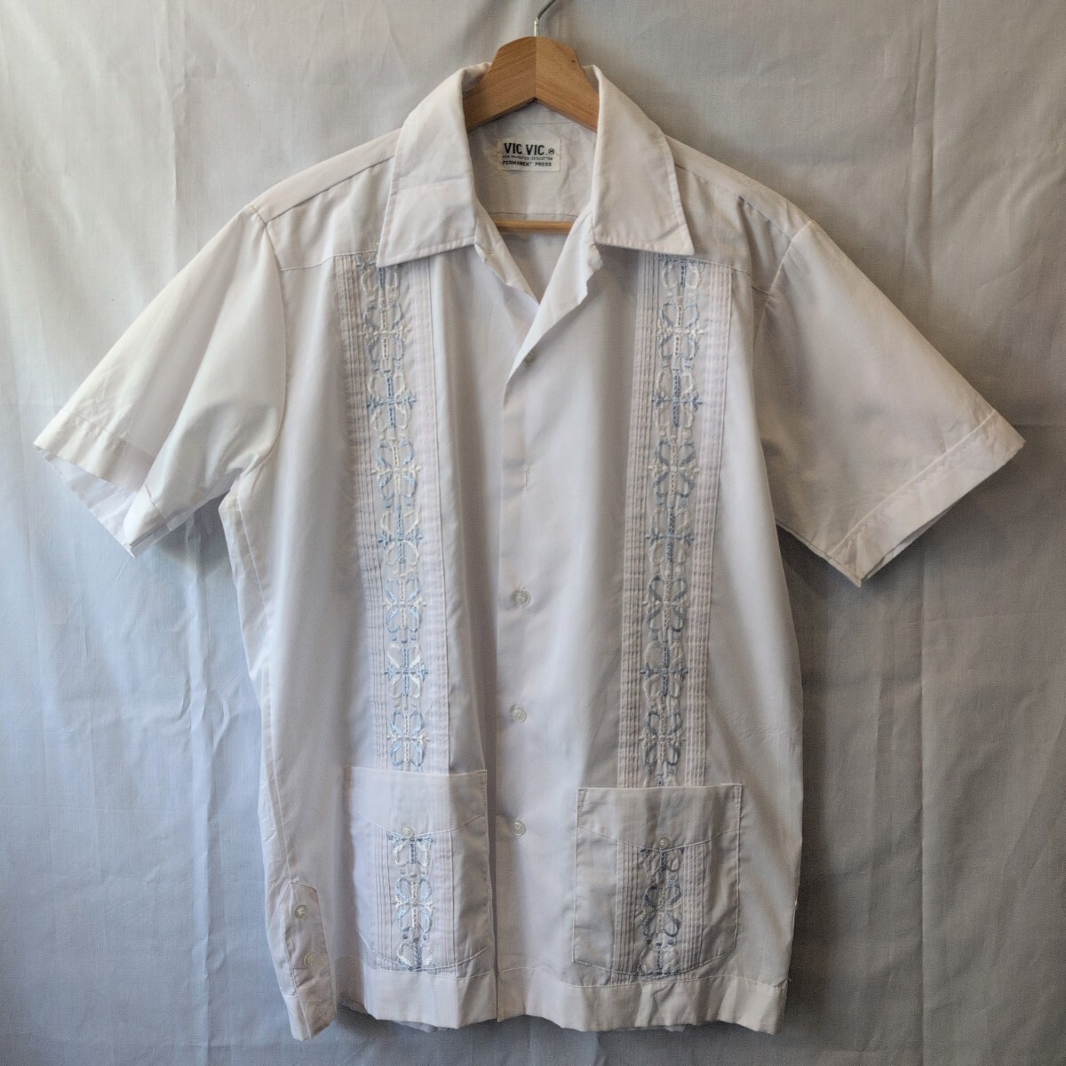 - 【送料370円】70s Vintage VIC VIC キューバシャツ メンズ M 半袖 白 ホワイト 刺繍 オープンカラー 70年代 ヴィンテージ ビンテージ