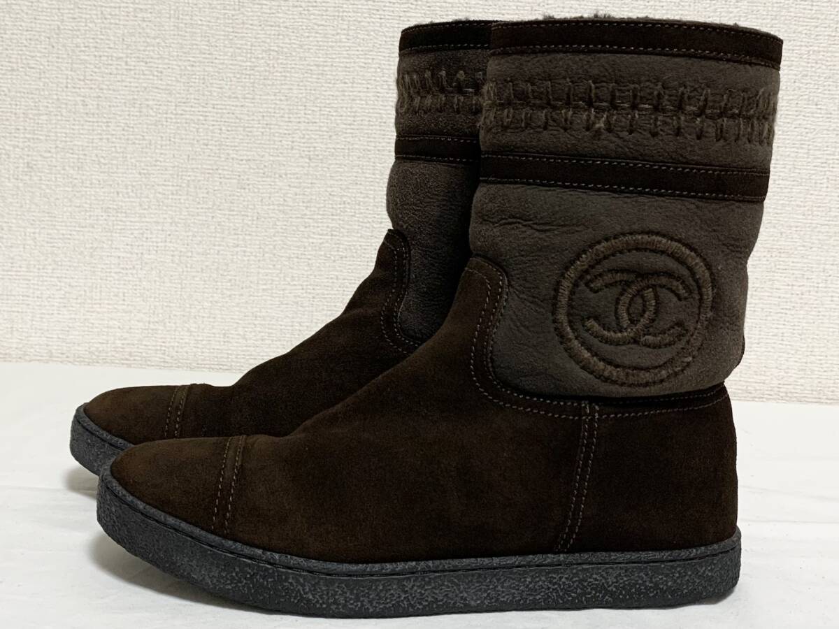 - 希少 超美品 シャネル CHANEL G30208 CC ココマーク ステッチ ムートン スエード レザー ショート アンクル ブーツ 36 1/2 23~23.5cm