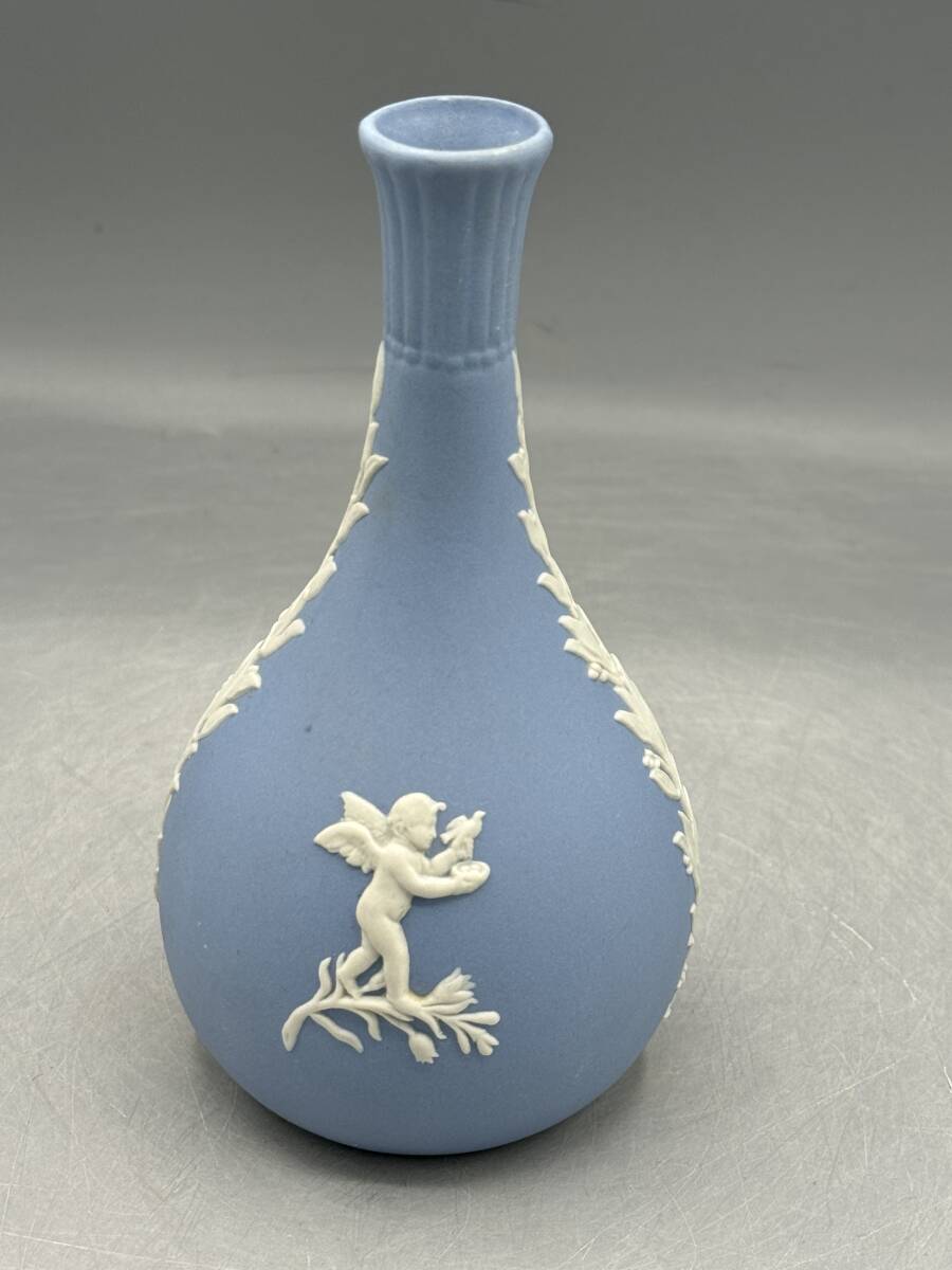 - 英国 ウェッジウッド ジャスパーウェア ペール ブルー 花瓶 一輪挿し フラワーベース ジャスパー (777)