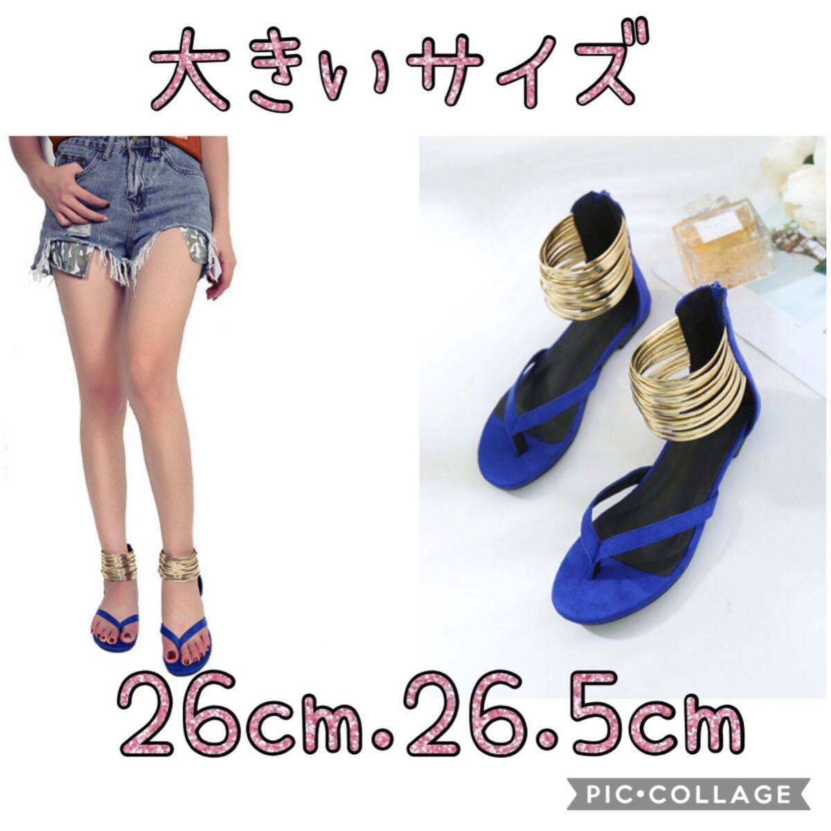 - 大きいサイズ 26センチ ゴールドアンクレットサンダル ブルー
