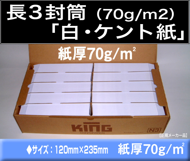 > 長3封筒《紙厚70g/m2 白封筒 ケント紙 長形3号》1000枚 A4三ツ折 ホワイト【業務用】長型3号 キングコーポレーション