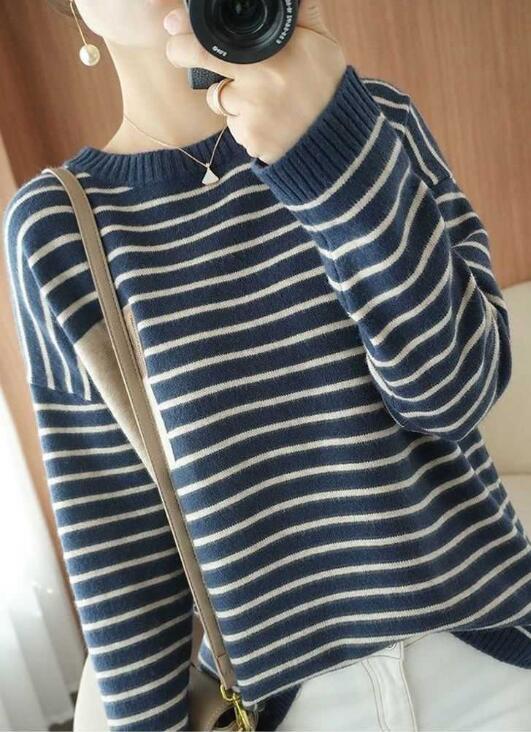 - 秋新品*ニット セーター レディース 長袖 ボーダー柄 ニット トップス 着痩せ おしゃれ かわいい セーター オフィス 通勤 女性* ネイビー