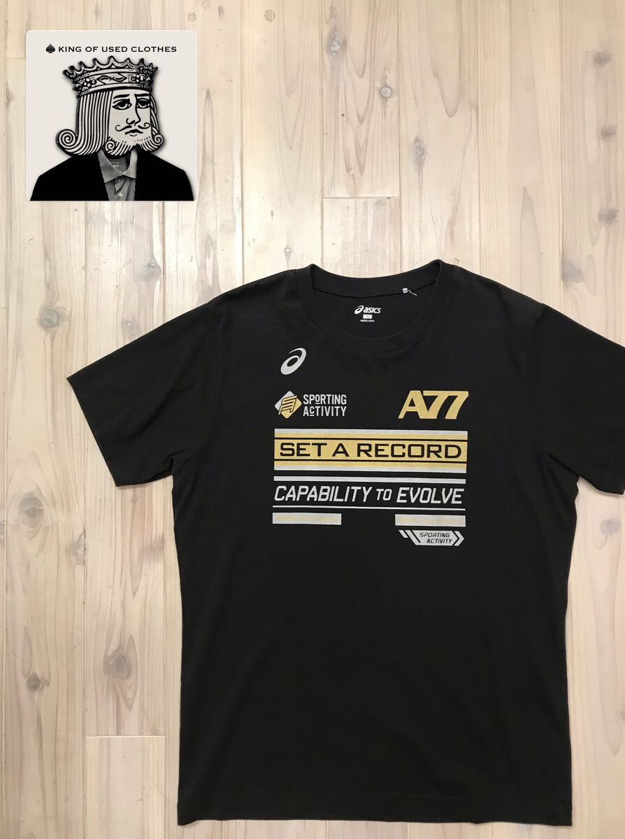 - asics アシックス トレーニングTシャツ Oサイズ 半袖Tシャツ ロゴ ブラック エクササイズ ランニング ユーズド 古着