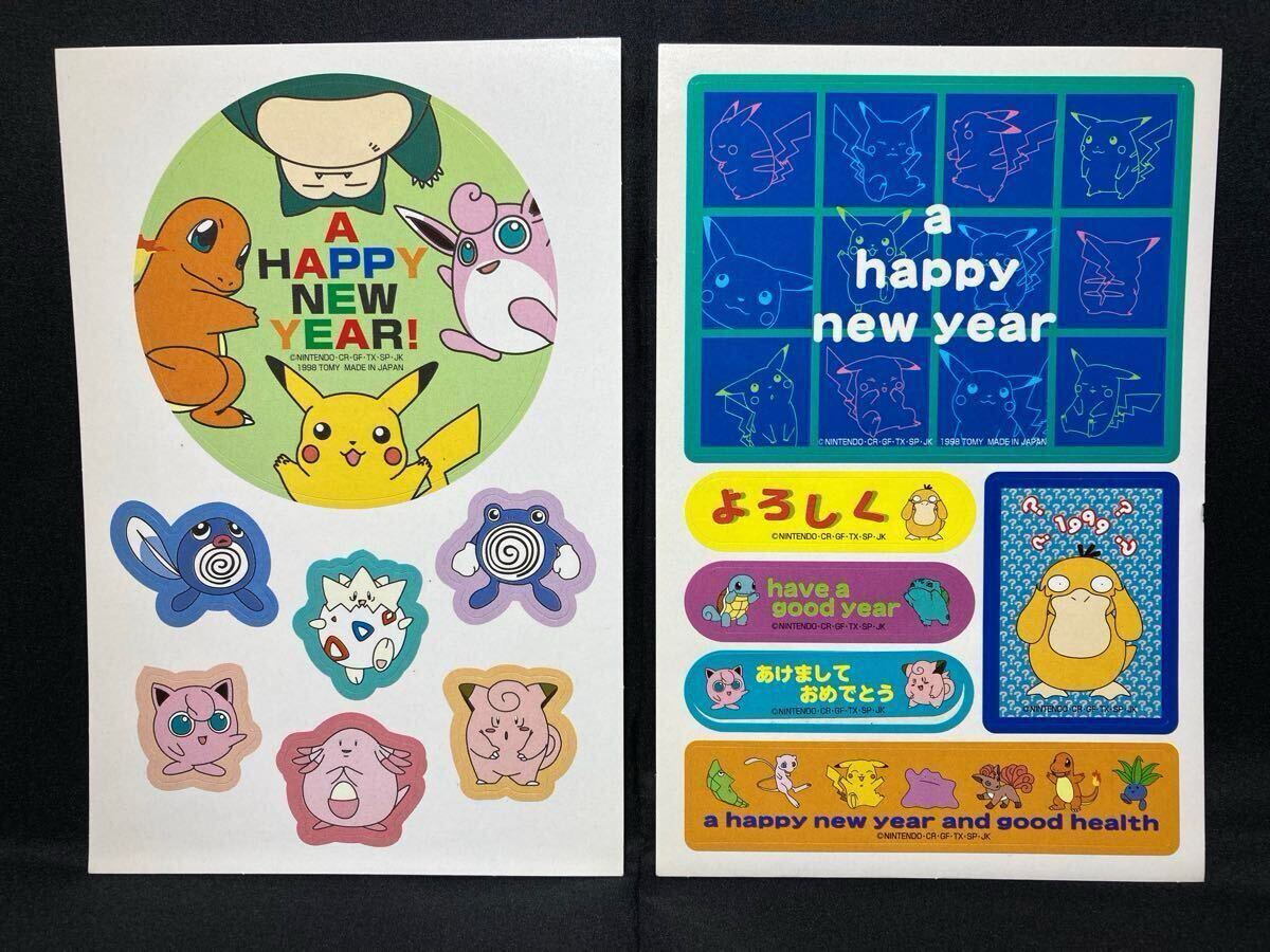 > ポケモン あけましておめでとう シール ステッカー 1998 カビゴン コダック ミュウ 等 検 お正月 年賀状 Pokemon A Happy New Year Sticker