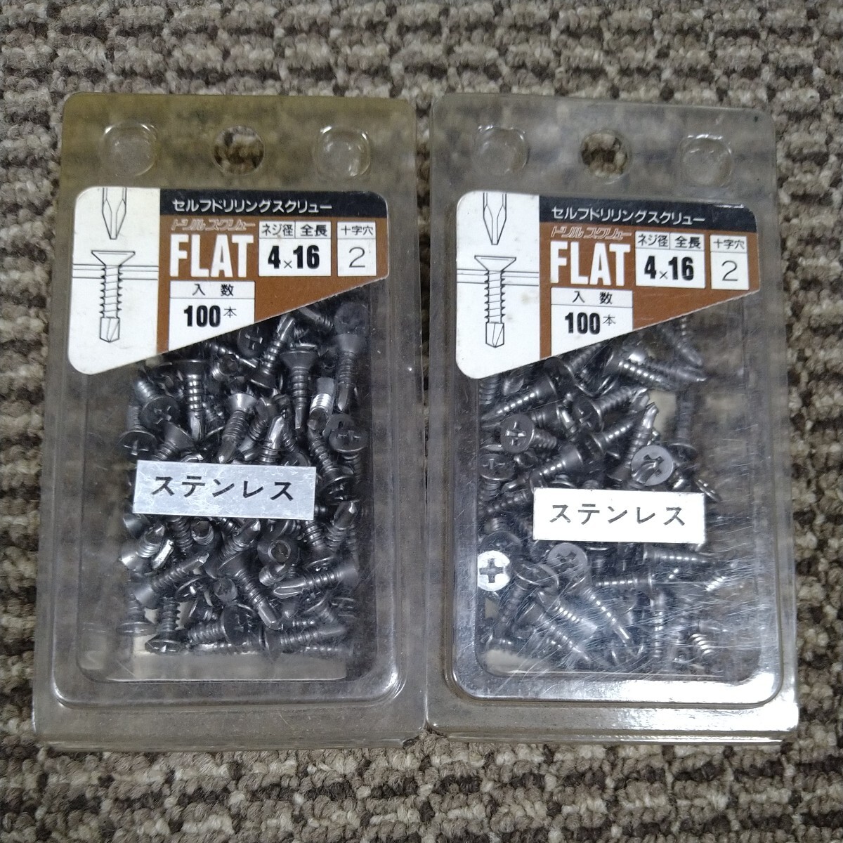 - ジャンク品/長期保管品/SANKO/サンコーテクノ/セルフドリルリンクスクリュー/ステンレス/FLAT皿4×16mm/1P100本入り×2Pセット