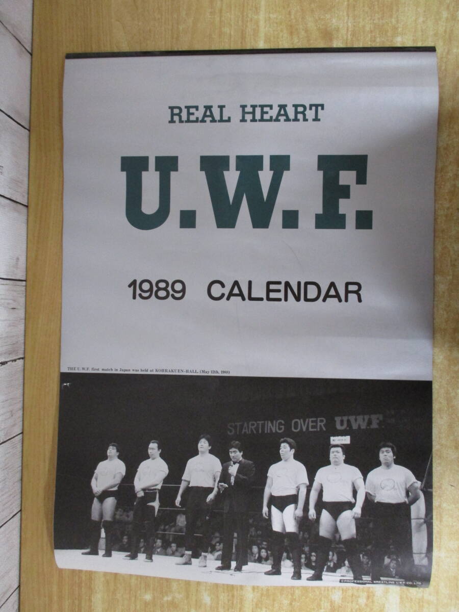 - d10-5 『U.W.F. 1989年 カレンダー REAL HEART』 高田延彦 前田日明 当時物