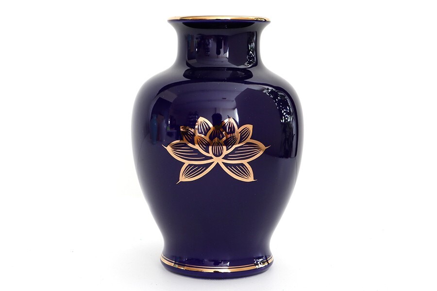 - 国産 陶器 花瓶 夏目 ■ 瑠璃 上金蓮 7寸 ■ 高さ20.5cm ■ 仏壇 お盆 お彼岸 お墓参り 供養