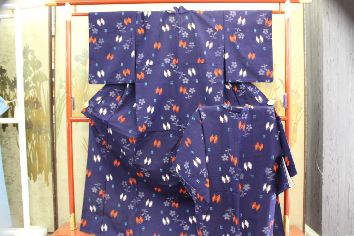 > きもの今昔7624 絣ウールアンサンブル バチ衿セブセ付き単衣手縫い仕立て 羽織は肩裏付き仕立て 身丈161CM