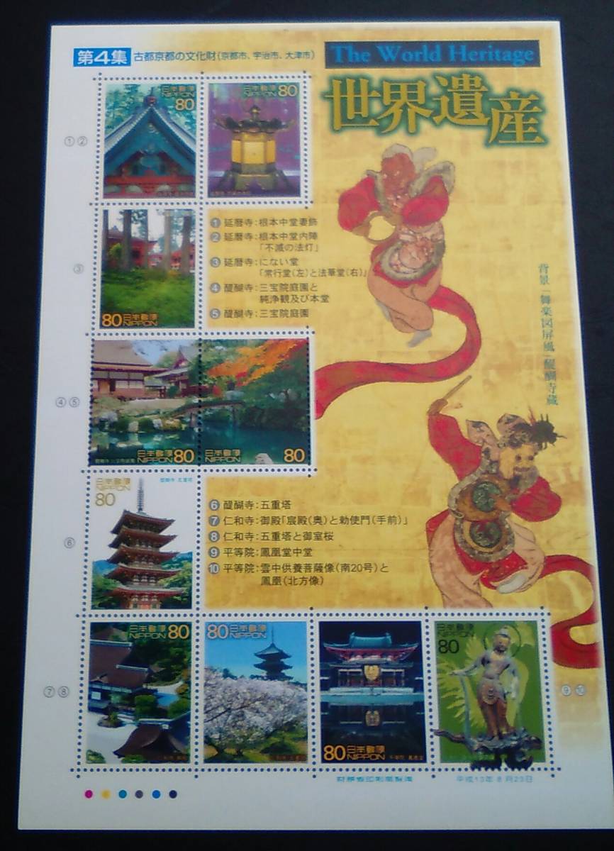 - 2001年・記念切手-第2次世界遺産シリーズ第4集(古都京都の文化財2)シート