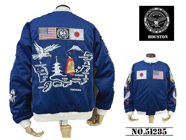 > 【送料無料 26%OFF】HOUSTON ヒューストン 別珍スカジャン SOUVENIR JACKET 「NATIONAL FLAG柄」 NO51285 NAVY_Lサイズ