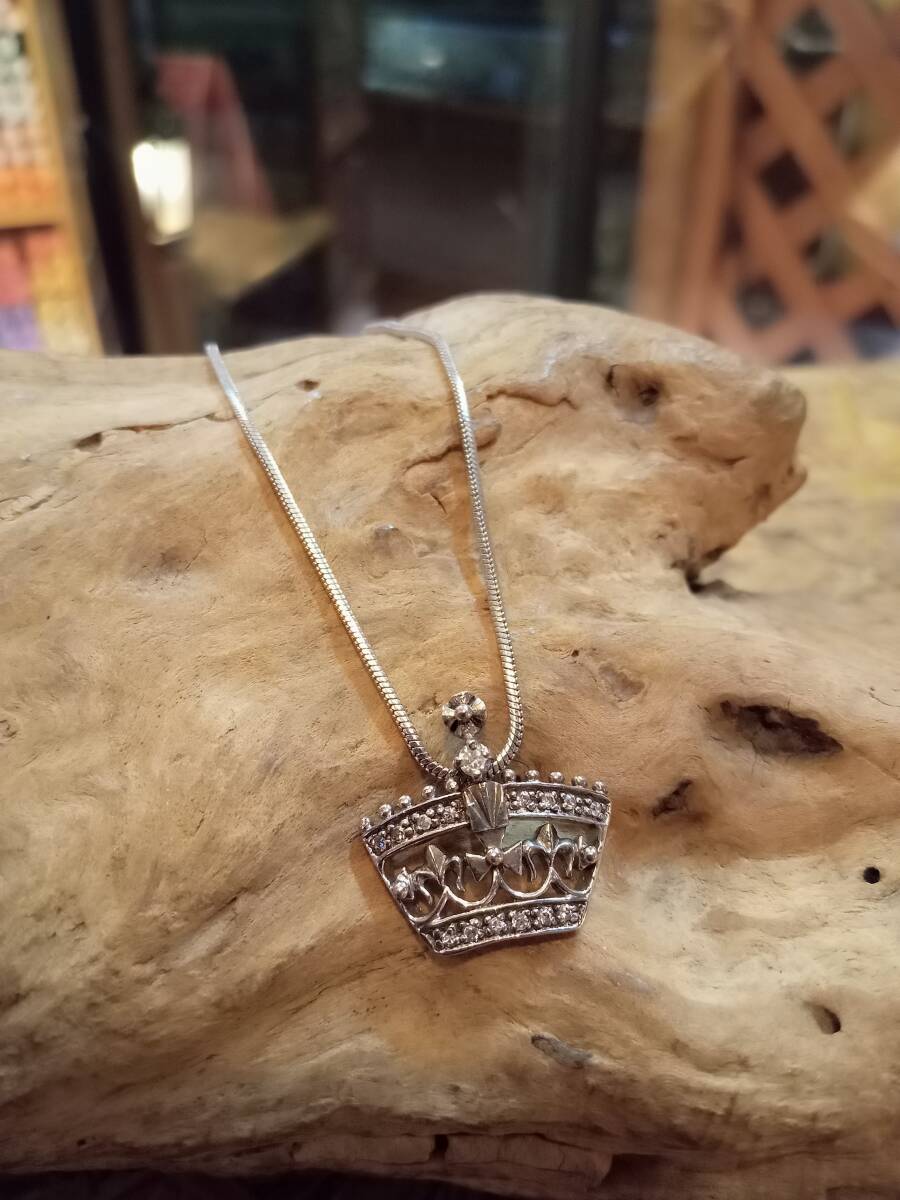 - シルバー925,ジルコニア,パヴェ,王冠クラウンCROWNペンダント,ネックレス