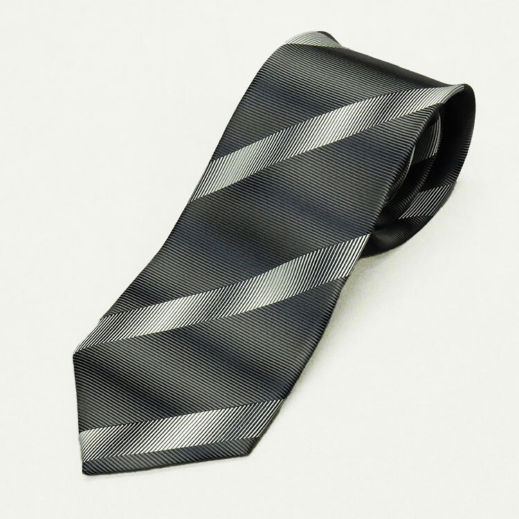 - 京都西陣織 ネクタイ シルク100% グレー×シルバー/ぼかしストライプ×ぼかしボーダー メール便OK NJ-BST02