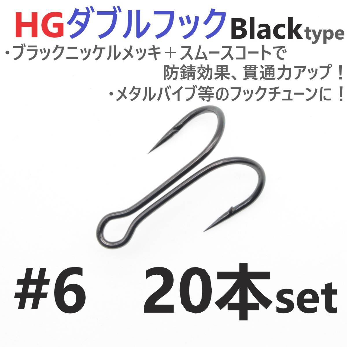 > 【送料150円】HGダブルフック ブラック #6 20本セット ハイグレードフック ソルト対応 メタルバイブ バイブレーション フックチューンに!