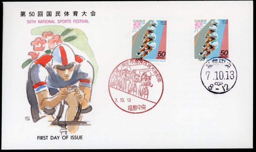 - 0005 【FDC】第50回国民体育大会[福島中央/7.10.13/郵便文化振興協会]