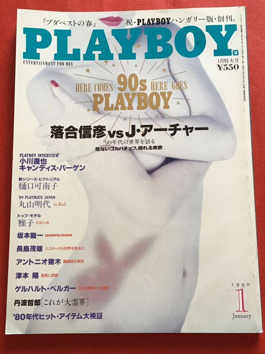 > 日本版 プレイボーイ1990年1月(no175)中綴じピンナップ付き/丸山明代/樋口可南子/キャンディスバーゲン/小川直也/他/