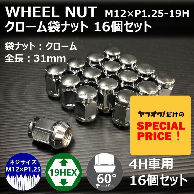 - SALE ホイール袋ナット(クローム)16個セット M12XP1.25-19HEX 4H車用(ラグナット ホイールナット 4穴 メッキ)