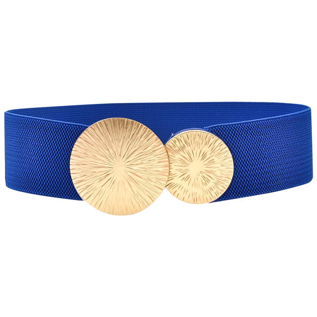 - 70cm~105cm【ブルー】【ゴールドバックル 幅広ゴムベルト】レディース
