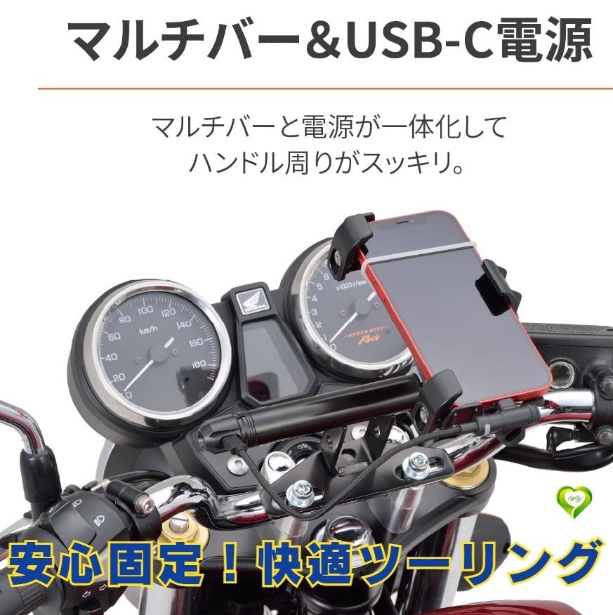 > 【安心固定!快適ツーリング】 バイク用 USB電源&クランプバー デイトナ(Daytona) USB-C PD3.0 急速充電 18W 便利 充電 ツーリング
