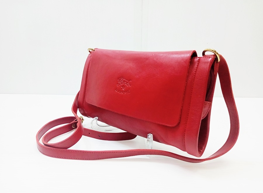 - 下松)【美品】IL BISONTE イルビゾンテ ショルダーバッグ レザー レッド 赤 ◆N2401038 MA16B