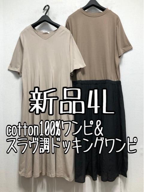 - 新品☆4L♪大人おしゃれワンピ2枚セット♪タテ切替&ドッキング☆x200