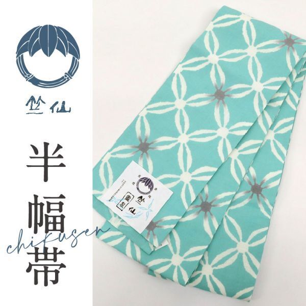 > 【半幅帯】 新品 『竺仙鑑製』 七宝繋 エメラルドグリーン 木綿 着物 BG7-2