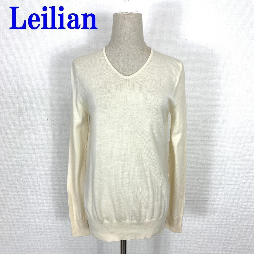 - レリアン 長袖ニット ウール Vネック 白系 アイボリーLeilian ホワイト セーター 7 C1476