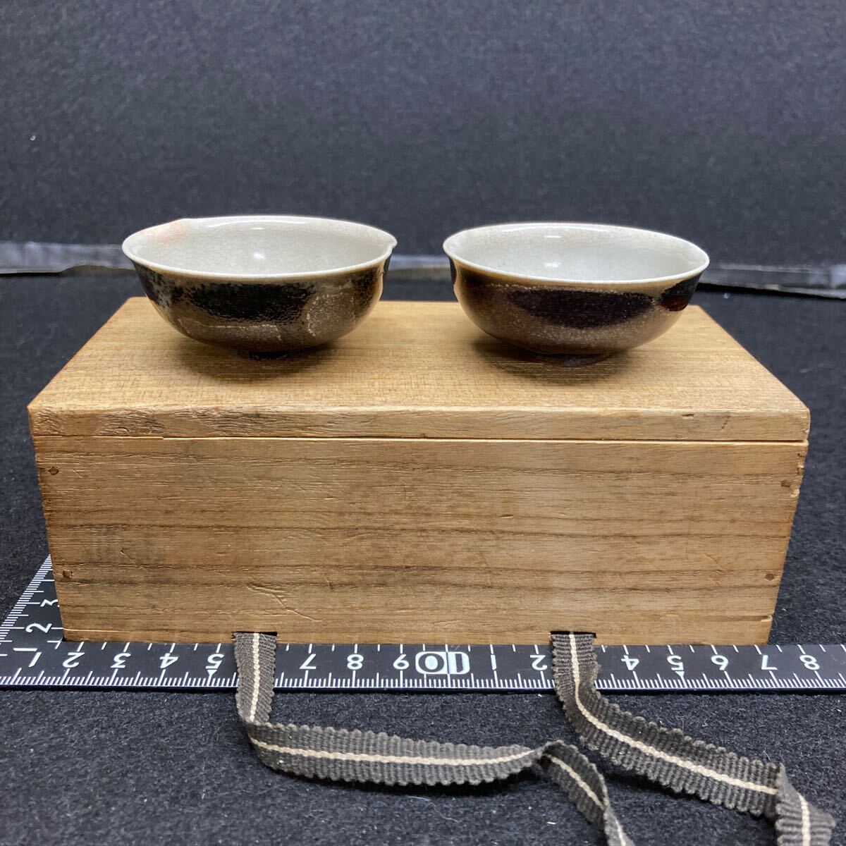 - 蛍窯 二代中村秋塘作(物故作家)雲鶴紋 盃 一対 共箱付き アンテーク