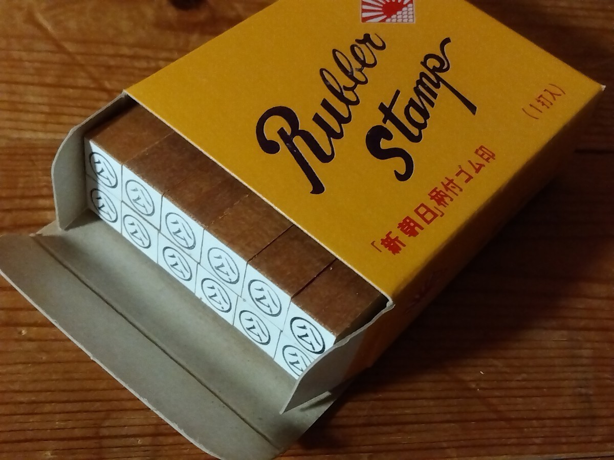 > 昭和レトロな【公】ゴム印、新品未使用の長期保管品、新朝日柄付ゴム印/スタンプ/印鑑、1箱(12本)の価格(最大4箱譲渡可)、 ♯朝来佐嚢♯