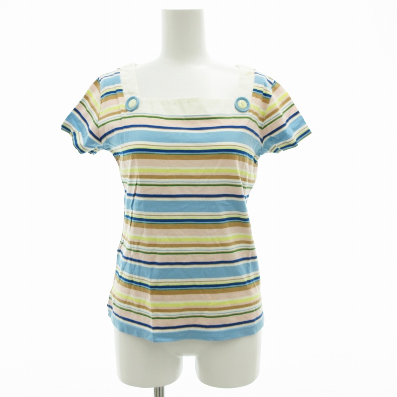 > エル ELLE プラネット PLANETETシャツ カットソー 半袖 スクエアーネック ボーダー ボタン 38 M マルチカラー /SS 0927 レディース