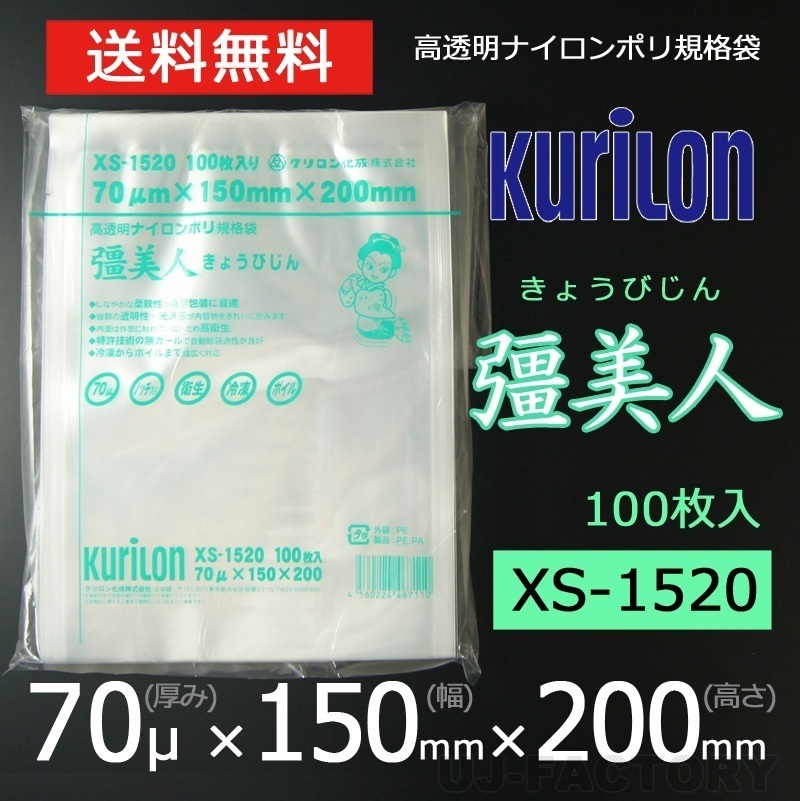 > 【即納!送料無料】彊美人 70ミクロン XS-1520 ナイロンポリ袋/真空袋 (厚み 70μ×幅 150×高さ 200mm)【100枚】★五層構造・三方規格袋